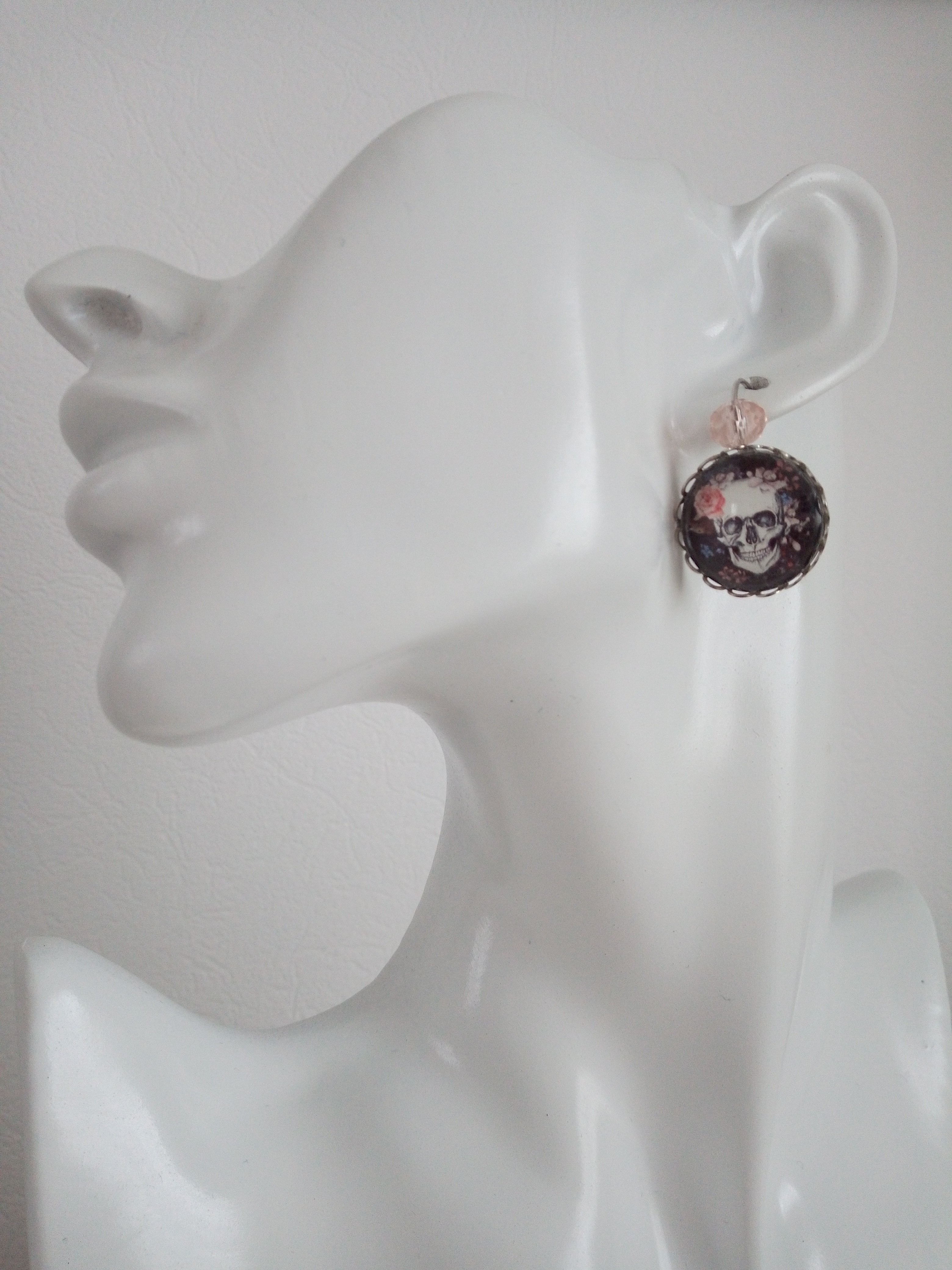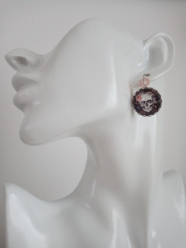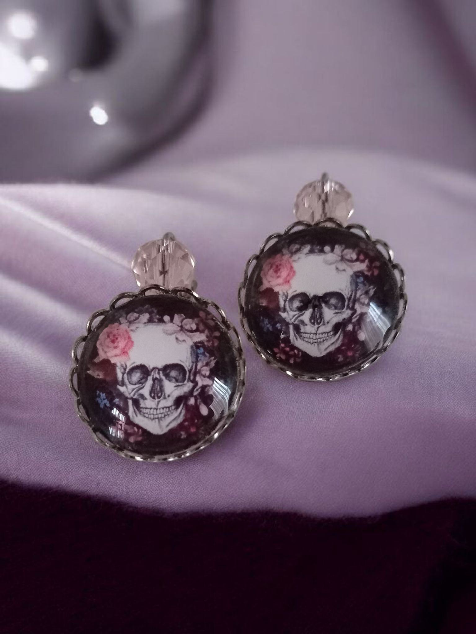 Le motif skull est protégé par un cabochon en verre de 20 mm qui lui apporte profondeur et brillance. Les boucles d'oreilles sont montées sur des attaches en dormeuses en acier inoxydable, un matériau durable, résistant et confortable à porter au quotidien.