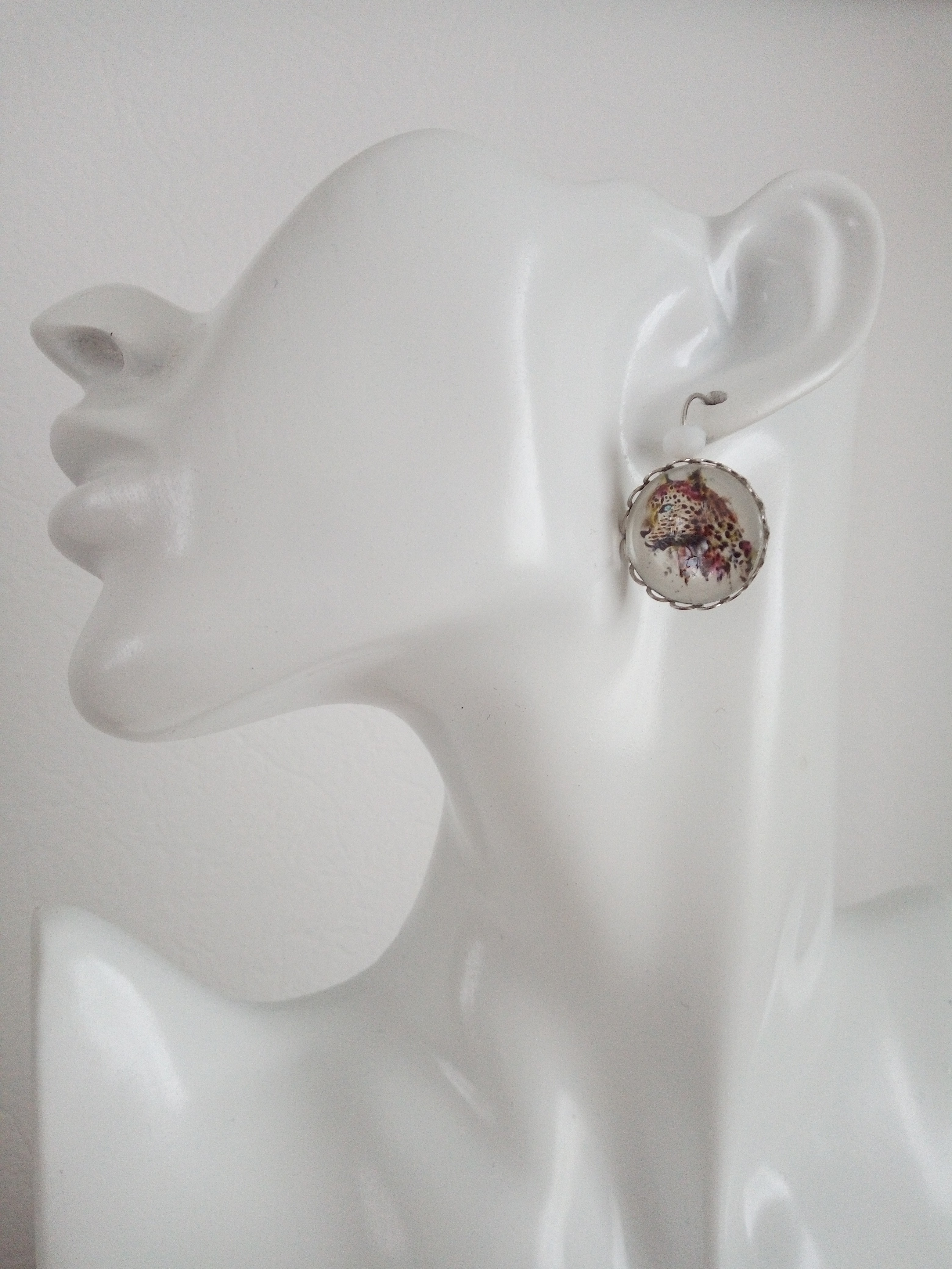 Apportez une touche de caractère et d'originalité à votre style avec ces boucles d'oreilles représentant une tête de guépard. Symbole de force et de puissance, ce motif est mis en valeur sous un cabochon en verre de 20 mm qui lui apporte profondeur et brillance.