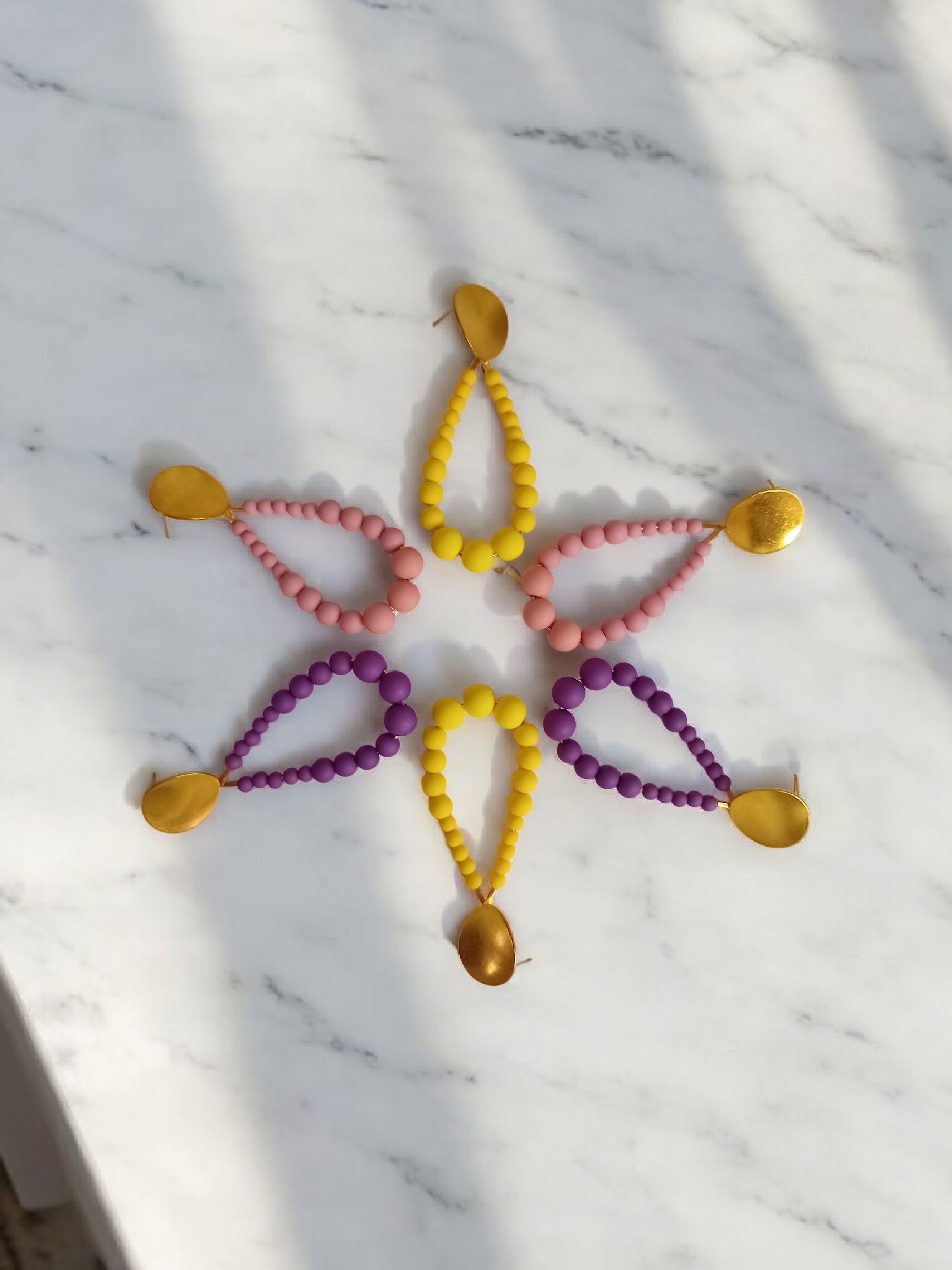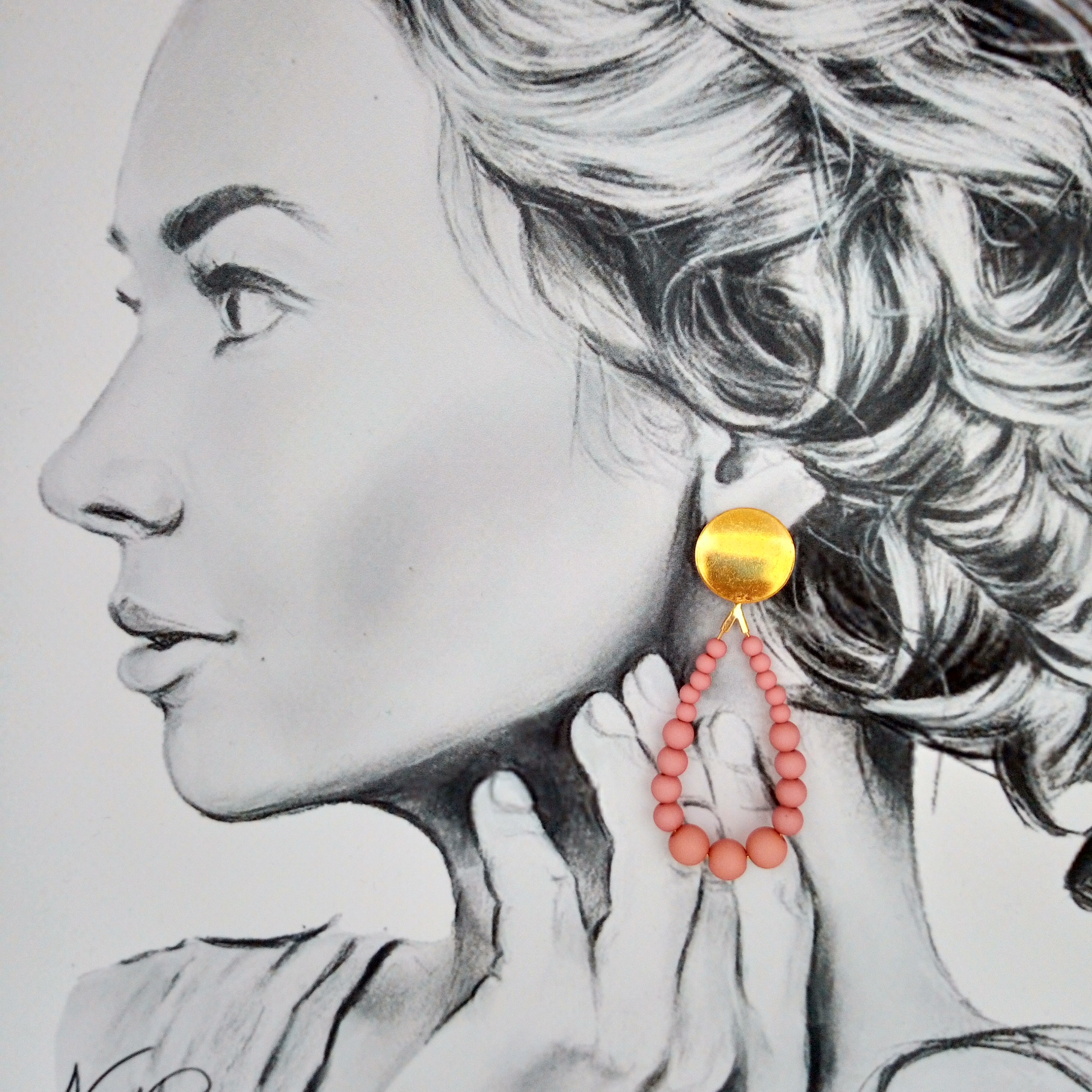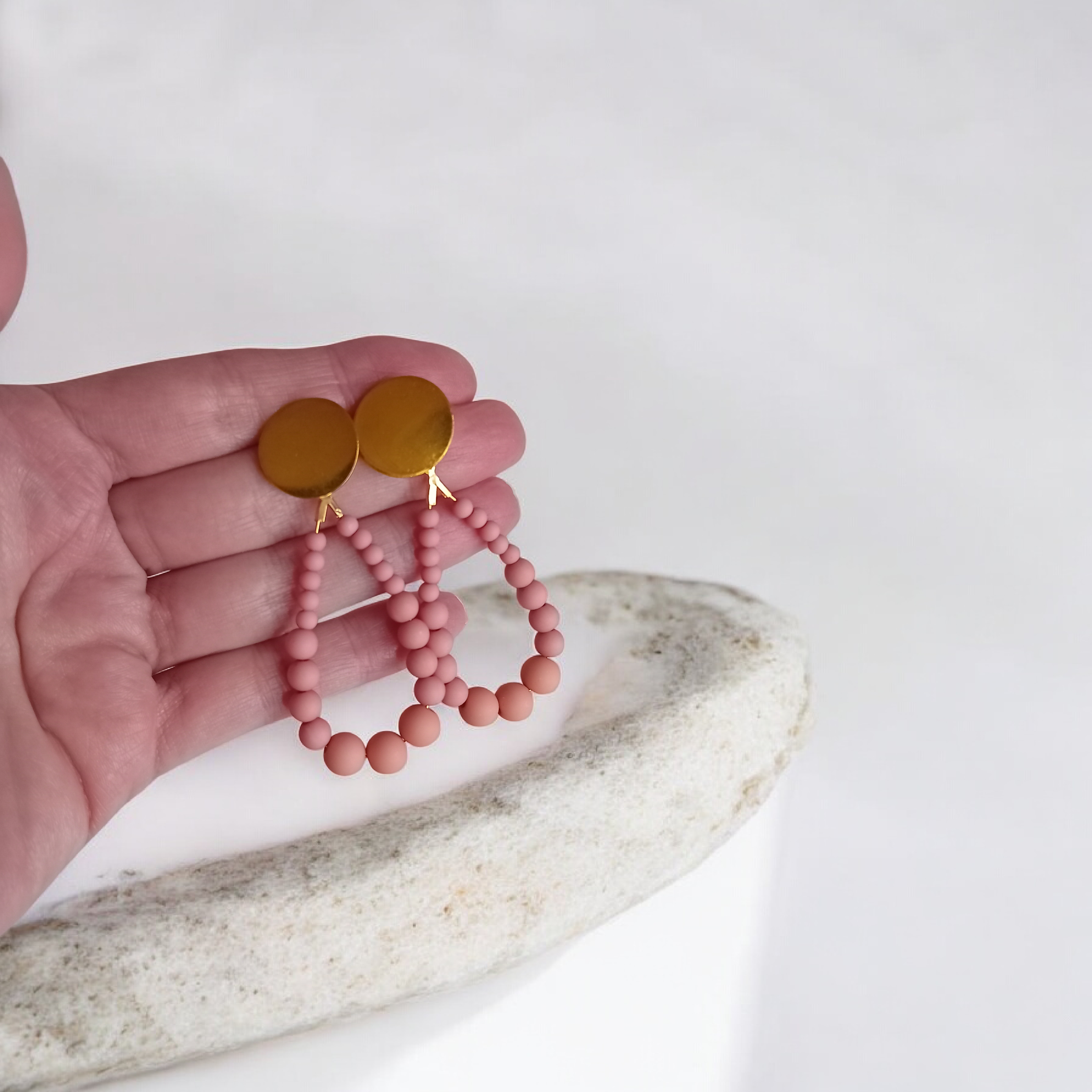 Apprêts en clous doré en métal TQ de 18mm, les perles en acryliques mat sont de 4mm/6mm/8mm de couleur rose.