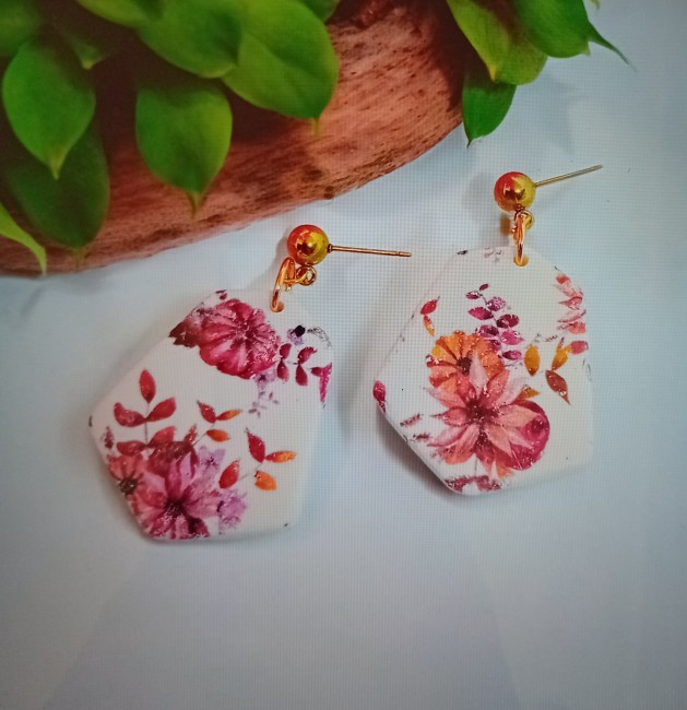 Matière en pâte polymère blanche et feuille de transfert thème florale.