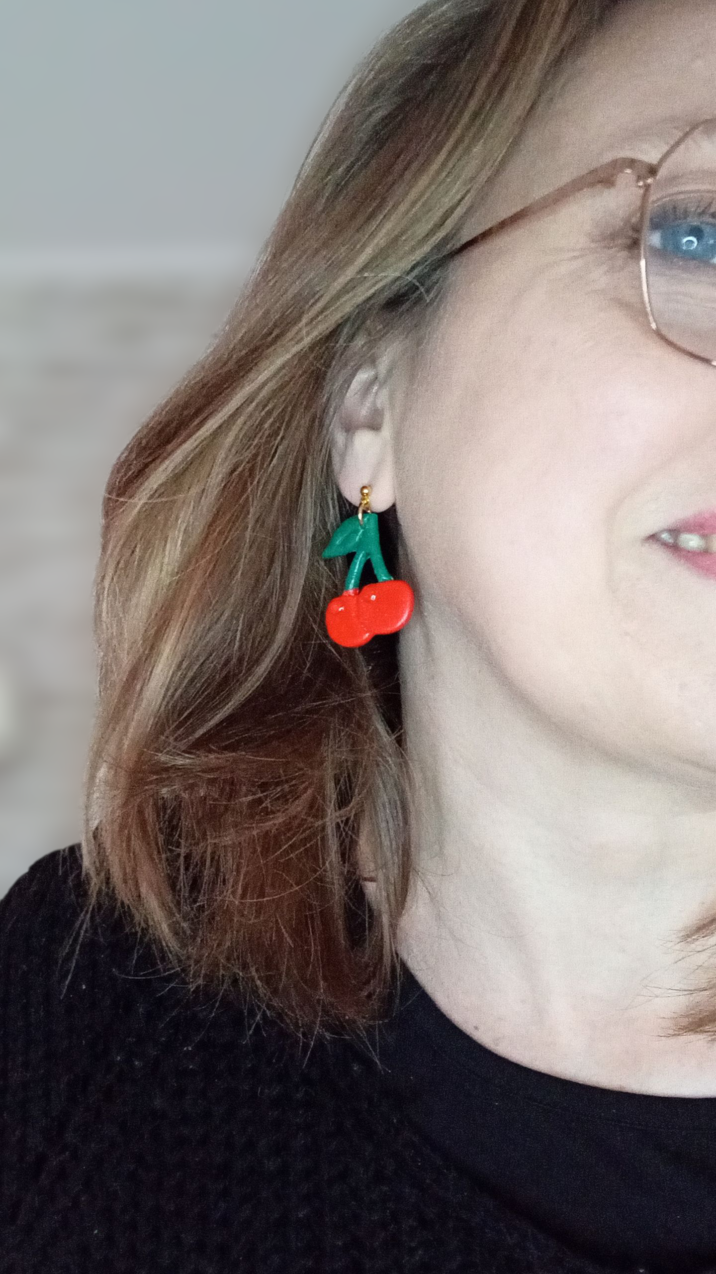 🍒 Qui enfant n'a jamais accroché une paire de cerises autour de ses oreilles ? Aujourd'hui je vous offre la possibilité de porter ces jolis fruits tellement délicieux à vos lobes d'oreilles. D'adorables boucles d'oreilles en pâte polymère avec un motif de 2 cerises rouges, accompagnées d'une petite goutte de résine. Ces boucles d'oreilles sont un véritable délice pour les femmes gourmandes qui souhaitent retrouver la saveur de leur enfance.