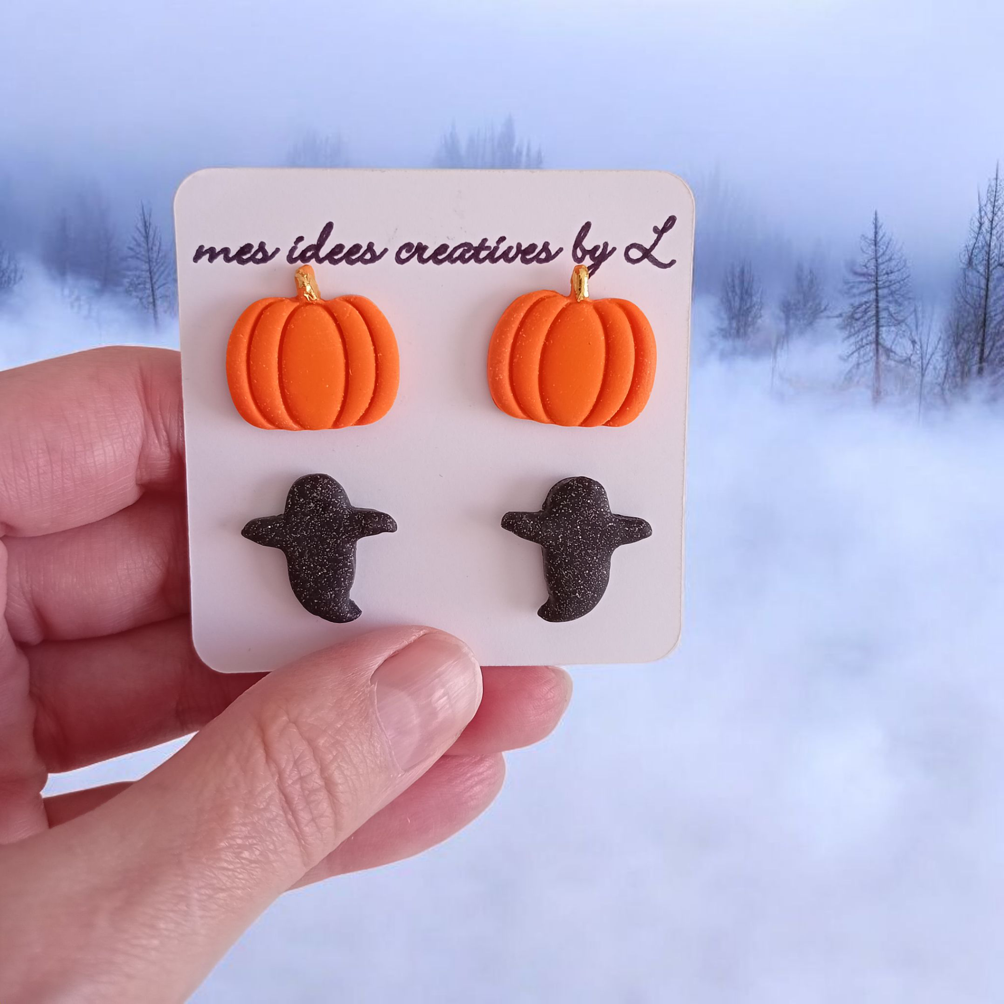 🎃 Plongez dans l'univers enchanté d'halloween, avec ces petites boucles d'oreilles fantôme 👻 et citrouille 🎃