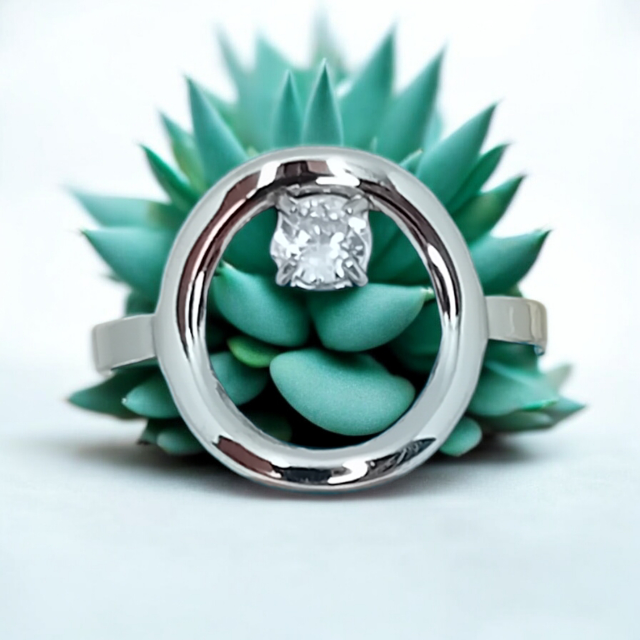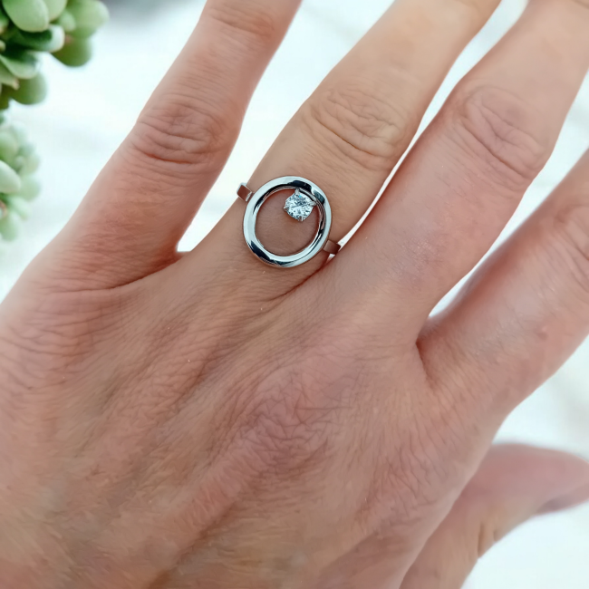 🤍 DESIGN : Forme ronde, avec zircon Bague de forme ronde, ornée d'un zircon blanc