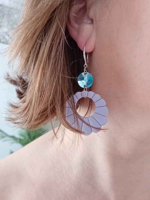 Matière en pâte polymère (divers coloris) - une couche de résine transparente au dos de la boucle d'oreille.