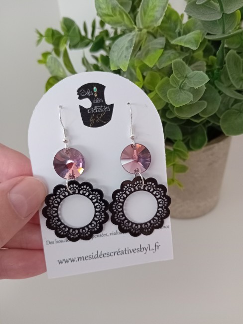 MATÉRIAUX : pendentif en métal coloré, un cristal rond, les apprêts sont en crochets et en acier inoxydable.