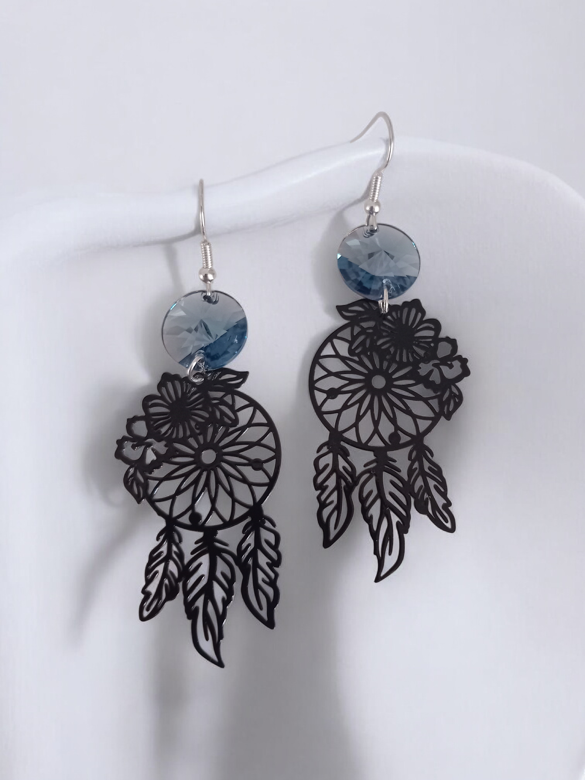 ✨ Affirmer votre style avec ces boucles d'oreilles attrape-rêve au pendentif noir, élégantes et pleines de caractère. Un bijou bohème revisité dans une version plus intense et moderne ✨