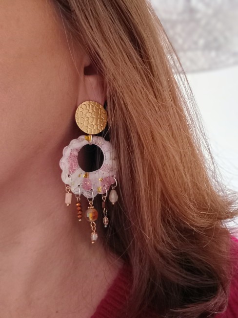✨ Légères et délicates, les boucles d'oreilles Naïa incarnent une élégance bohème aux accents romantiques. Façonnées à la main, elles captent la lumière avec subtilité et apportent une touche douce et lumineuse à vos tenues.